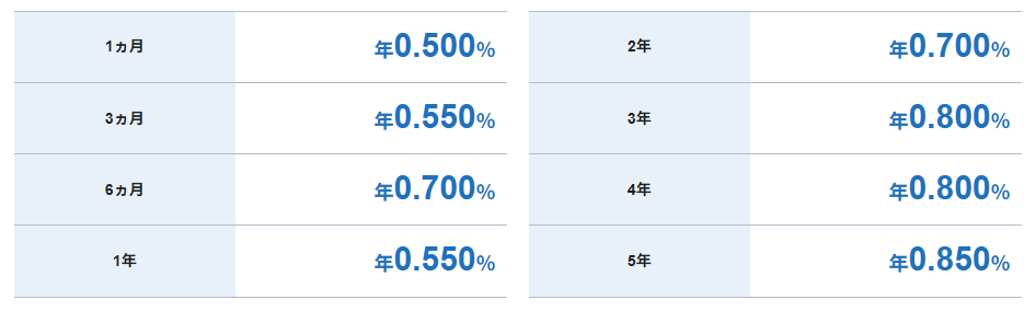 私が預けた時は0.83%だったけど、現在は少し下がって0.7%(6か月)のようです。