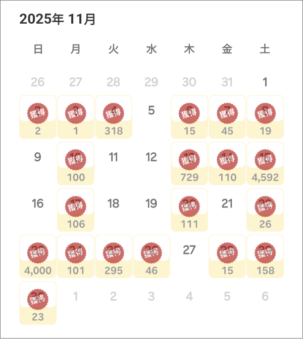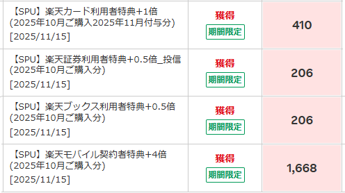 2025年11月に獲得した楽天ポイント