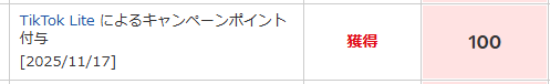 TikTok Liteからのポイント700pt