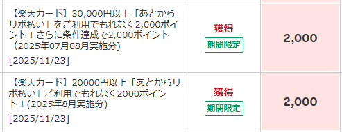 楽天カードあとからリボ4,000pt