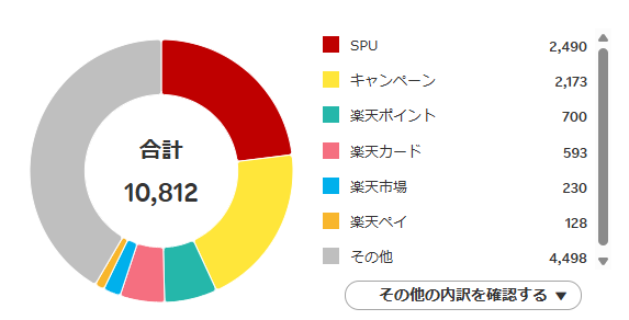 以上、先月の楽天ポイント獲得実績のまとめでした。