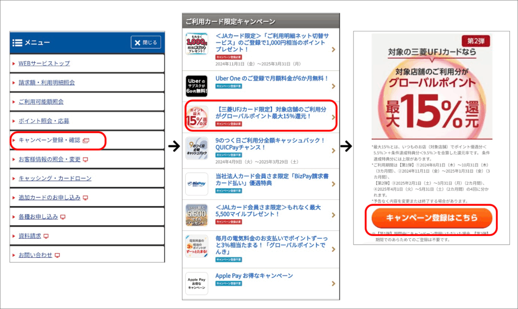 三菱UFJカードの15%ポイント還元の詳細 出典元:三菱UFJ銀行のサイトより