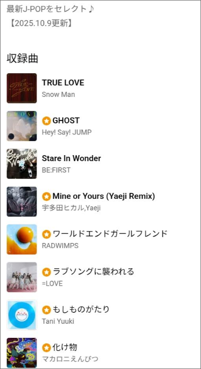 オレンジの★マークはバンドルプランだと聴けない曲なので、全体の3割くらいの曲しか聴けないようです。