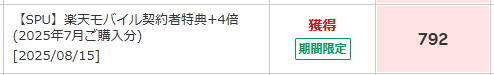 楽天マラソンで買い物をすれば、+4倍のSPUの恩恵でほぼ回収できる金額です。