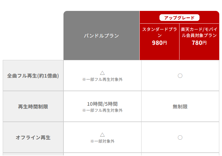 プランの中にある無料のバンドルプラン。ただし、一部の曲しか聞けないので注意。