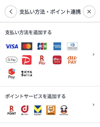 👇🏻設定できる支払方法とポイントサービスはこちら