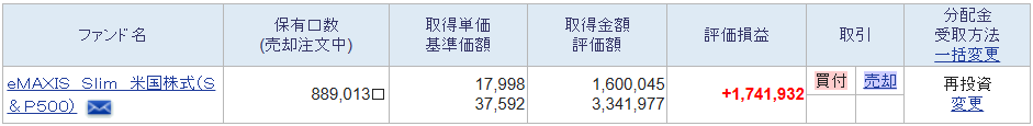 息子の名義では、eMAXIS Slim米国株式(S&P500)を2年間約160万円を積み立て。
