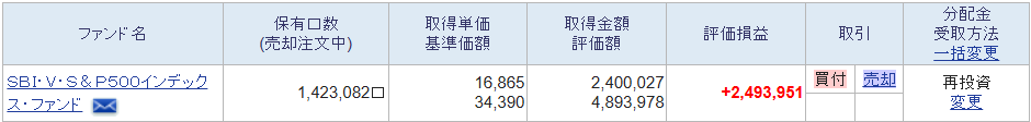 娘の名義ではSBI・V・S&P500インデックス・ファンド(SBI・V・S&P500)を3年間・240万円を積み立て。