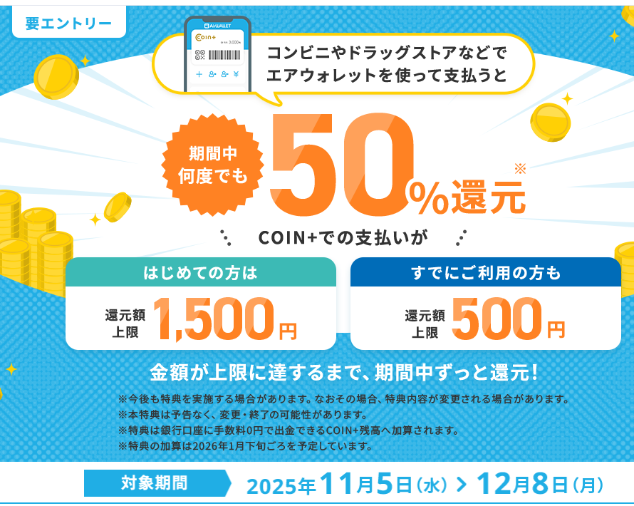 NEW【2025/12/8まで】エアウォレット(Coin+)のキャンペーン