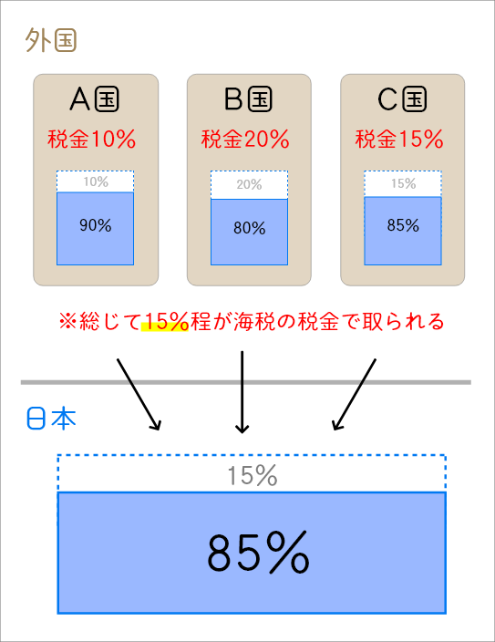 海外で引かれる税金が15%というのは概算だよ。実際は…