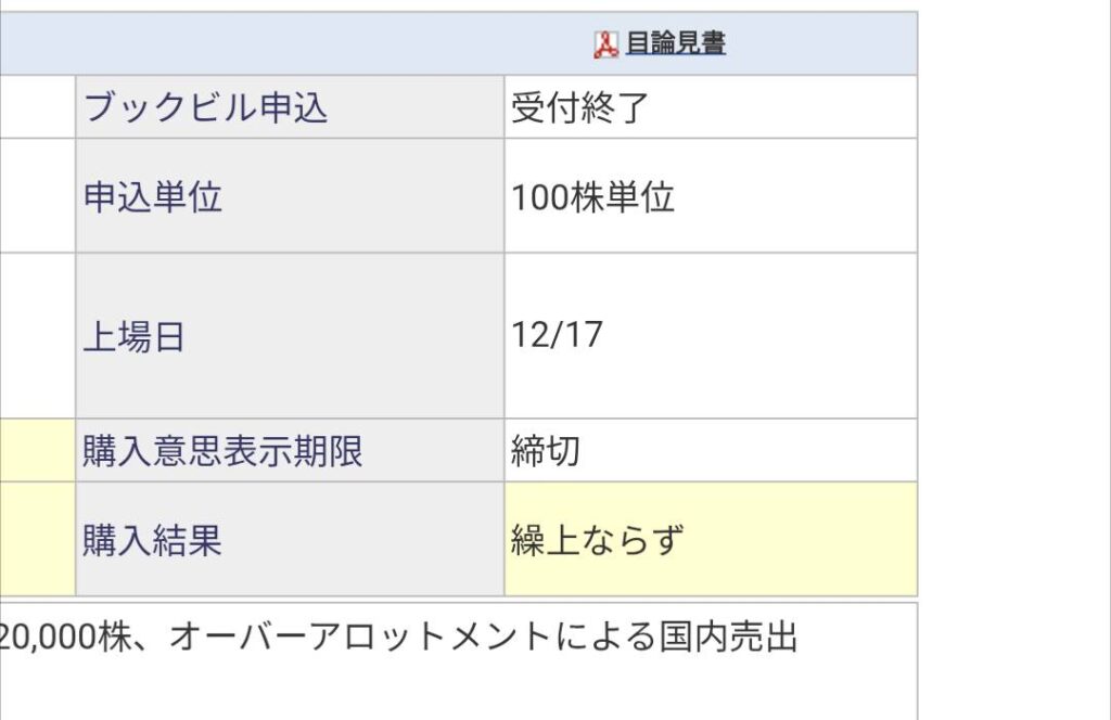 ちなみに、同じく申し込んでいた夫は口座にお金を入れ忘れていて、残高が足りずIPOの抽選対象外になってしまったとのこと。