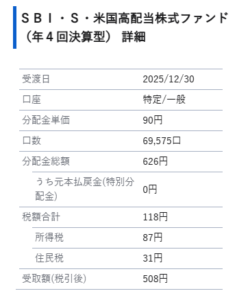 SBI・SCHD=SBI・S・米国高配当株式ファンド(年4回決算型) の分配金が確定しました。