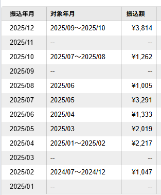 先日、バリューコマースの2025年1年間の金額が確定しました。