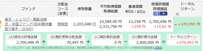 2025年の成長投資枠で240万円一括購入していた楽天SCHDが2026年に入ってから絶好調です!