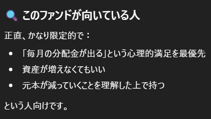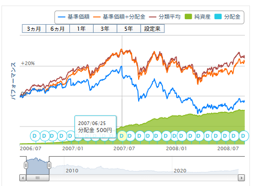 分配金に目がくらんでしまうけど、長期投資向けの商品ではなかったとのことかな。