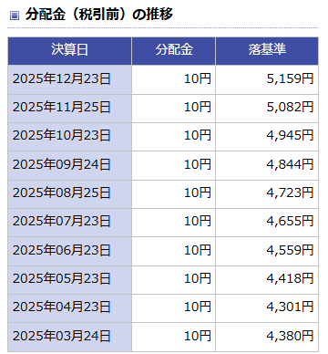現在も毎月10円(1万口あたり)出てます。