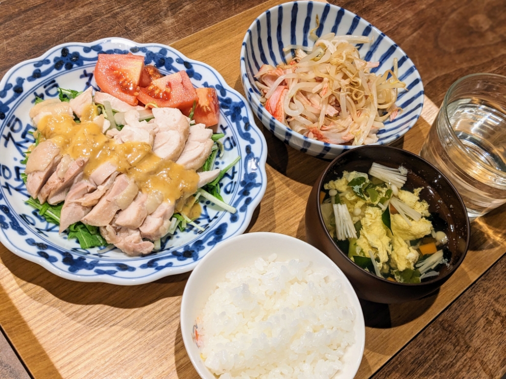 - 蒸し鶏の味噌マヨソース