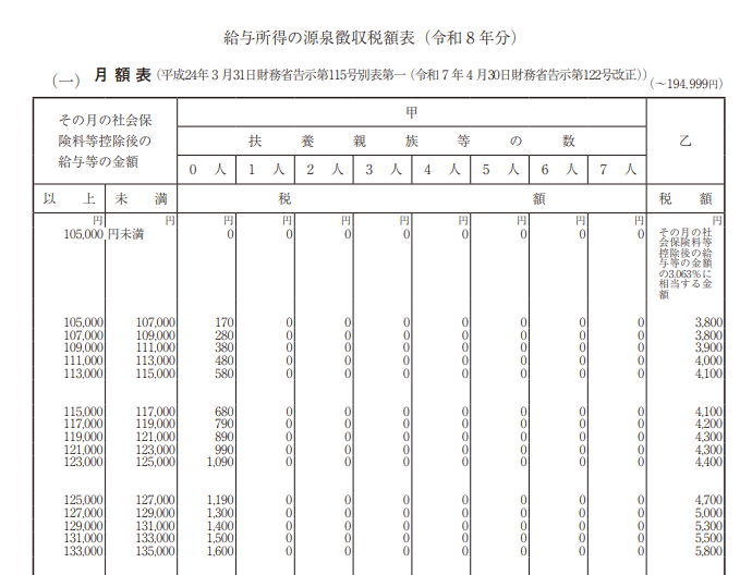 追記:2026年・令和8年の源泉徴収額ははこちら