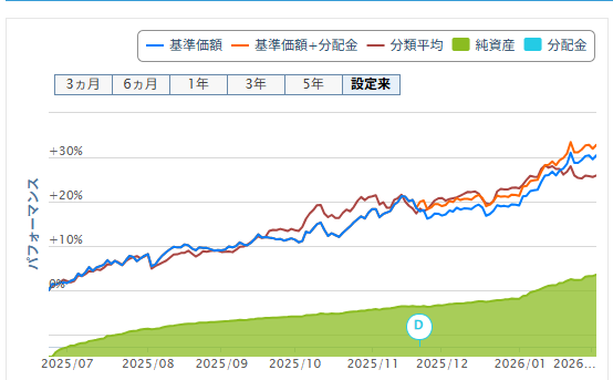 設定日からだいぶ上がってからの購入だったので、分配金がもらえればいいかなぁ、なんて思ってましたが、基準額がさらに上がってます。