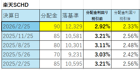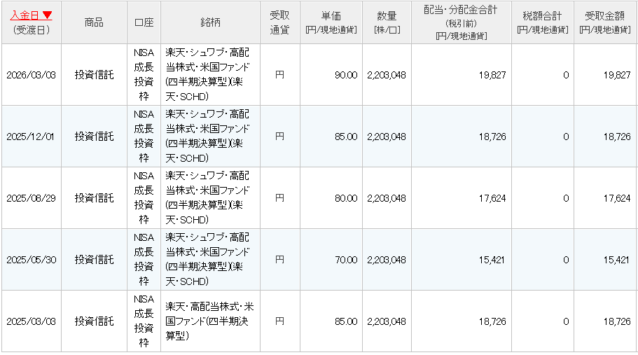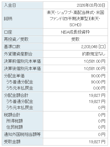 楽天SCHD5回目の分配金(2026年2月25日)