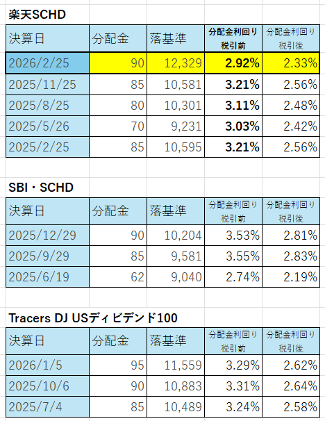 これまでの楽天SCHD分配金の記録