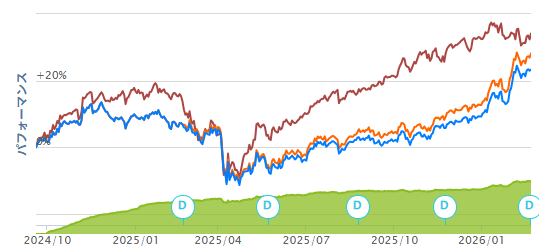 基準価格の値動きはほぼ3ファンド同じ感じということを考えるとやっぱりSBIが一番良さそう。