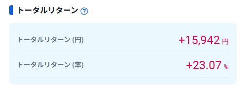 現在のトータルリターン・含み損益はこんな感じです。