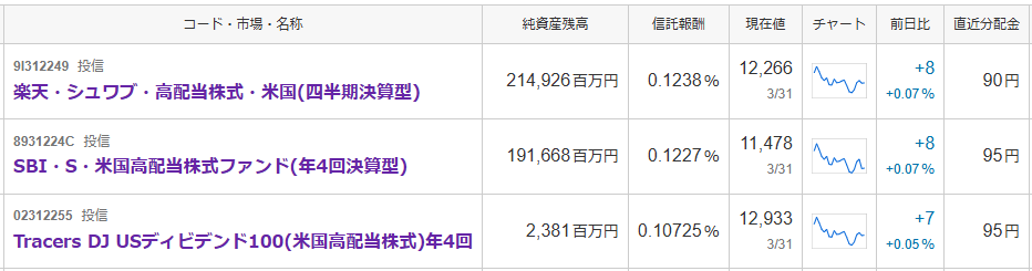 楽天SCHD・Tracers DJ USディビデント100との比較
