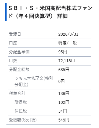 SBI・SCHD=SBI・S・米国高配当株式ファンド(年4回決算型) の分配金が確定しました。