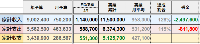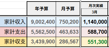 家計簿を4月はじまりに変更したので、3月で1年間が終了しました。