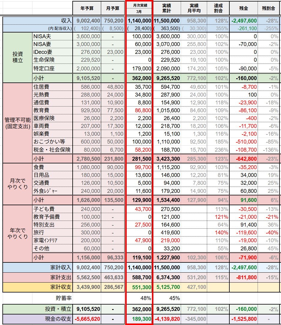 配当生活ぐだぐだ日記 / 節約・家計管理 / 家計簿 / 4人家族の家計簿・決算ボーナスが出る【2026年3月】
