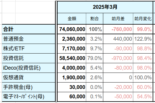 配当生活ぐだぐだ日記 / 節約・家計管理 / 資産状況 / 40代の資産公開・ゆるやかにマイナス【2026年3月】