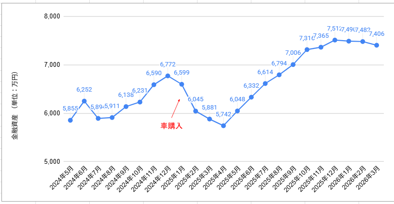 「正しい家計管理」という本の指南に従い、毎月5日頃に先月末時点の家族全員の口座を合わせて資産の合計や変動をまとめています。