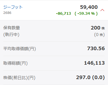 • ジーフット上場廃止でマイナス8万円、悲しい