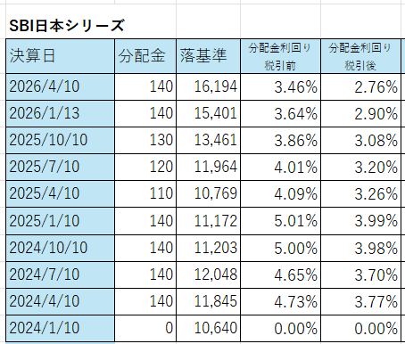 SBI日本シリーズの分配金利回りは?