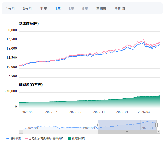 今回は基準額が高い割には分配金は控えめな印象。1年前と1%以上も差があります。(分配金目的で購入するには現時点ではちょっと割高かも。)