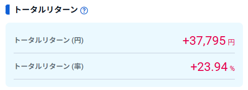 現在のトータルリターン・含み損益はこんな感じ。