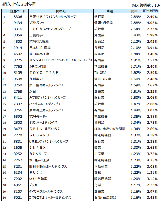 SBI日本シリーズ - 日本高配当株式(分配)組入銘柄