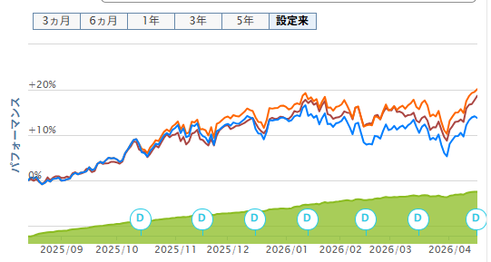 前月3月16日時点の基準価額(約11,047円)と比べると、荒れた相場の割には基準価額もしっかり回復し、分配金もしっかり出て、ひとまずホッとしています😌