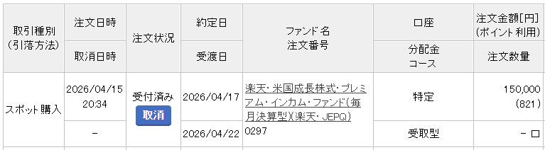 楽天・米国成長株式・プレミアム・インカム・ファンド(毎月決算型) (愛称:楽天・JEPQ)