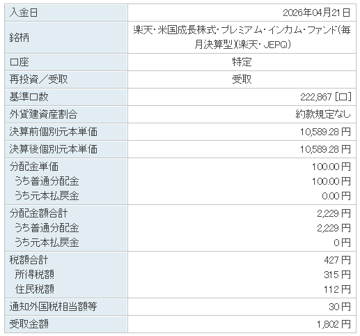 楽天JEPQの購入を検討している、配当金について気になってる方の参考になれば幸いです。