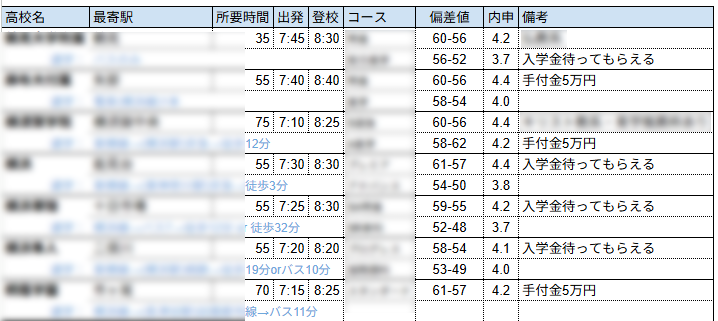 とりあえず、落ち着いて併願する可能性のある私立高校をリストアップしてみました。