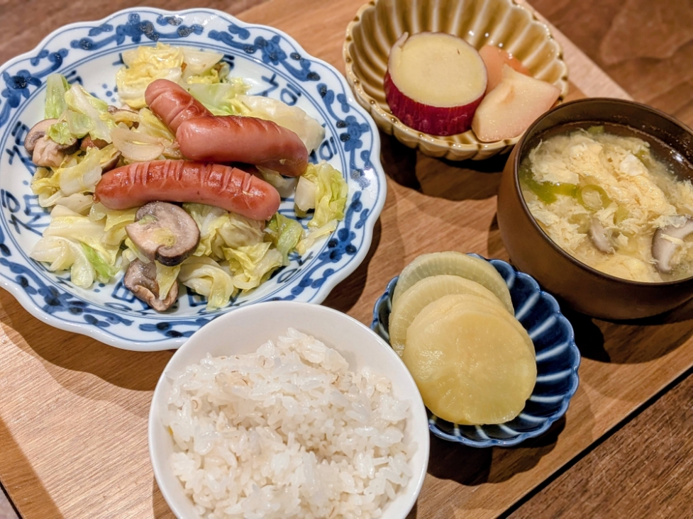 - ウィンナーとキャベツのガーリック炒め